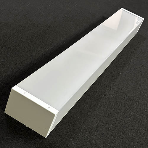 Плафон изготовлен из молочного светотехнического органического стекла. Вырезанная лазером заготовка из листового блочного оргстекла марки СБ толщиной 3 мм методом термогибки на струне сгибается в Г-образный профиль. С торцов профиля на алюминиевых заклепках установлены металлические боковины, окрашенные порошковой краской белого цвета. Крепление плафона к светильнику производится винтами в двух точках через отверстия на отгибе Г-образного профиля оргстекла. Текущее производство.