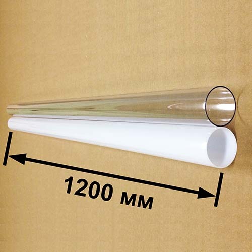 Рассеиватель-бокс 30.00.01 для люминесцентной лампы 40Вт представляет из себя пластиковую трубу диметром 50мм и длиной 1200мм. Он используется для герметичной установки ламп в составе однолампового люминесцентного судового светильника для освещения котельных и камбузных помещений с повышенной влажностью типа СС-30М (1х40Вт) и его двухлампового варианта типа СС-33М (2х40Вт) .
